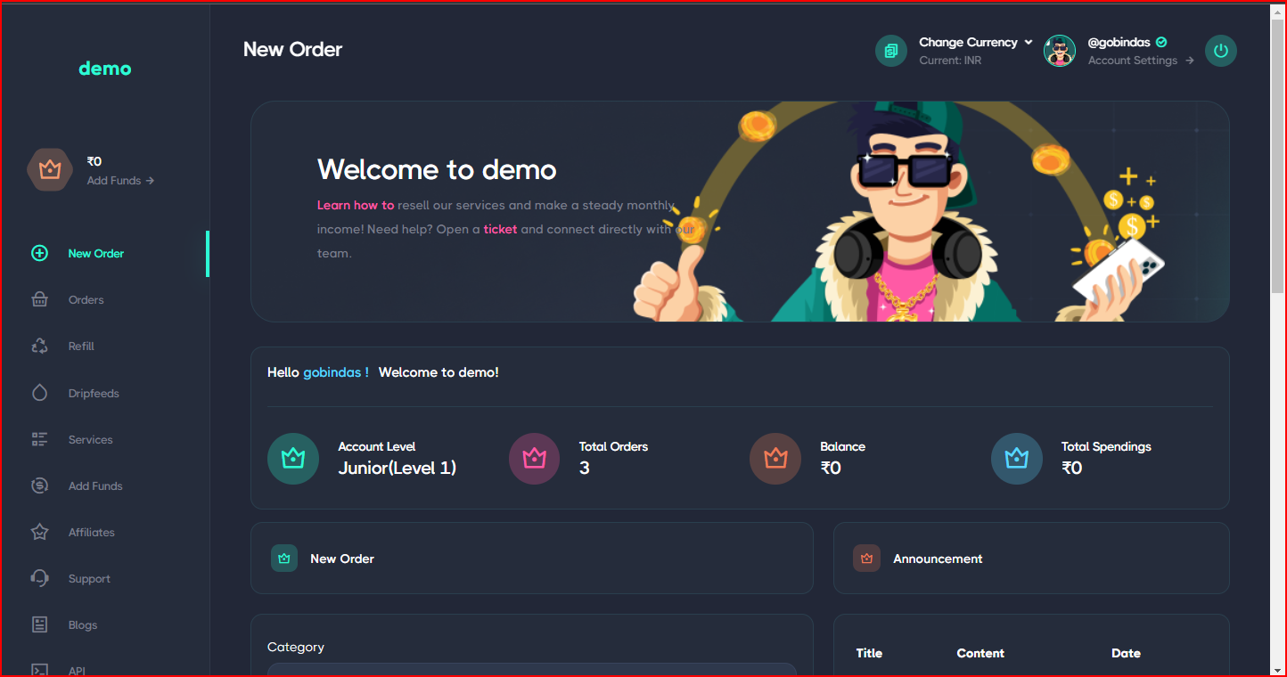 • Set price per 1K units, min/max limits, refill/cancel